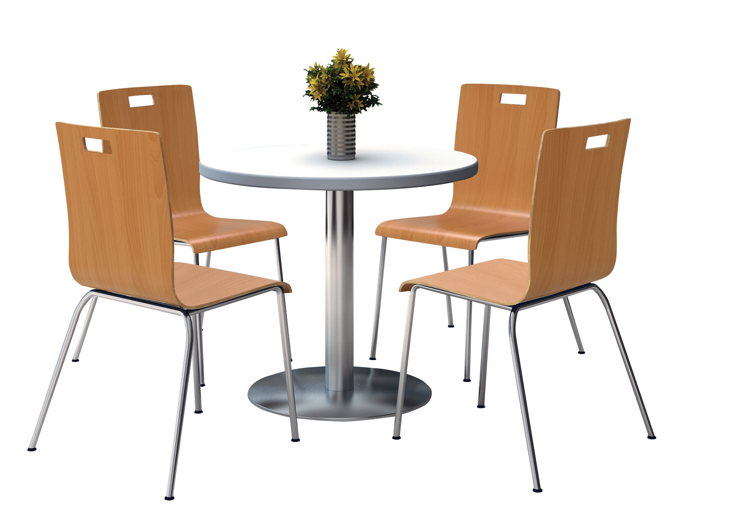 Kitchen & Dining Furniture KFI Seating Round 42" Dia. Pedestal Table with 4 Natural Stacking Bentwood Chairs, Crisp Linen Laminate Top | Image source: i5.walmartimages.com